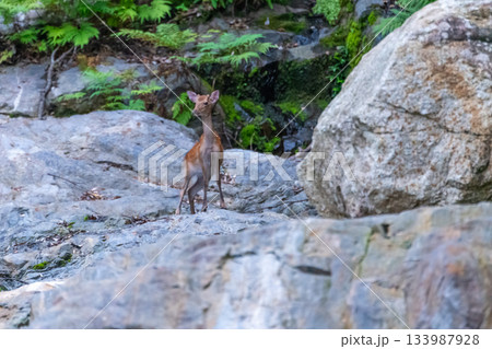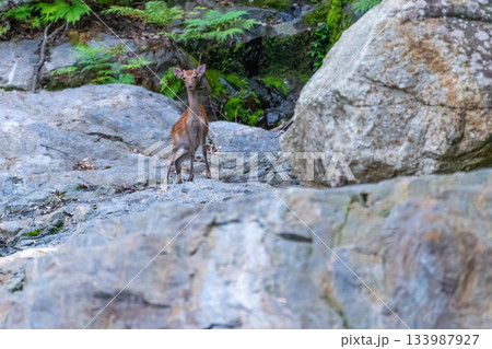 ヤクシカ子ども 今年生まれた 世界自然遺産屋久島(夏