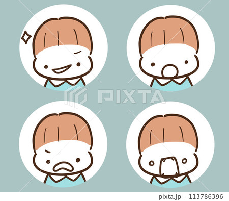 丸に入った絵文字、顔文字、表情のマークアイコンのセット