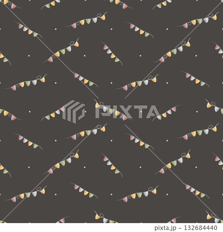 Pattern festive garland of triangular flags. Hand-drawn watercolor illustrations in Halloween childish style. Seamless print isolated from background for design clothing, wallpaper, packaging paper