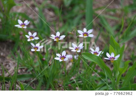 ニワゼキショウの花「ニワゼキショウ属」新緑・初夏をイメージ背景素材