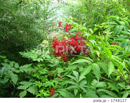 ニワトコ 赤い実 自然 緑 赤 高原 日本 植物 実 魔除け 接骨木 庭常