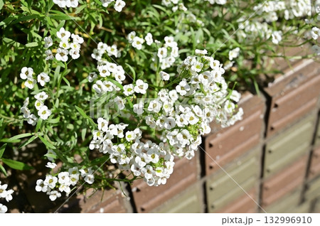 三鷹中原に咲く白いアリッサム(スイートアリッサム)の花