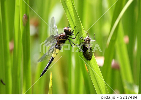 コシアキトンボ♀とそのヤゴ(脱け殻)