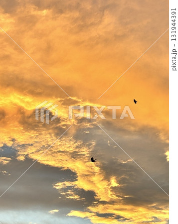 夕焼け空を飛ぶ鳥