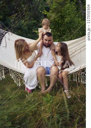 family mother father sister teenager and baby in hammock