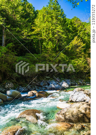 秋の山梨県山梨市 紅葉の西沢渓谷