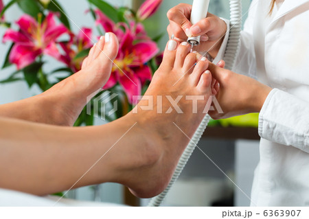 ネイルサロンでペディキュア・フットネイルをする女性とネイリスト