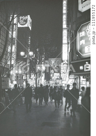 夜の街を歩く人々 (1988年頃の夜の新宿の街並み)