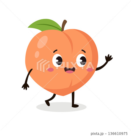 Adorable peach cartoon character walking for healthy nutrition design