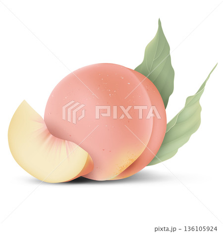 熟したジューシーな桃の果実2種。水彩イラストのトレースベクタター。白桃。