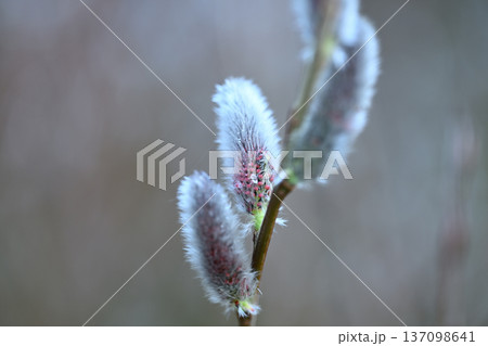 春の訪れを告げるネコヤナギの芽吹きと柔らかなボケ背景