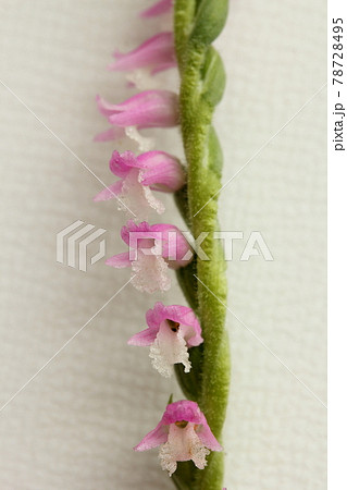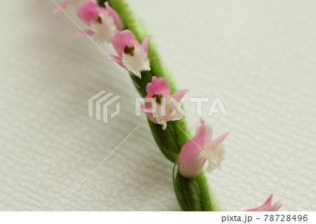 春の野原に咲くネジバナのピンク色の花