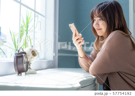 若い女性 スマートフォン 検索 笑顔 イメージ