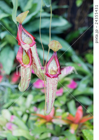 植物園の温室の赤いネペンテス