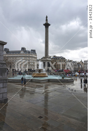 小雨に煙るトラファルガー広場のネルソン記念柱