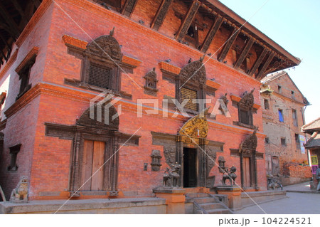 南アジアのネパール 首都カトマンドゥ郊外の世界文化遺産の古都バクタプル ダルバール広場の寺院群