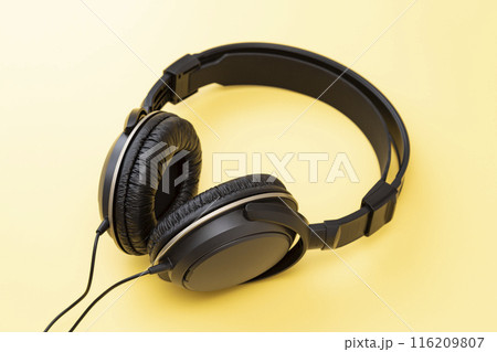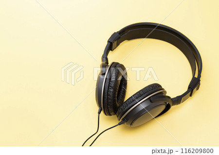 黄色背景にヘッドホン