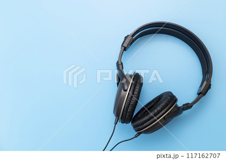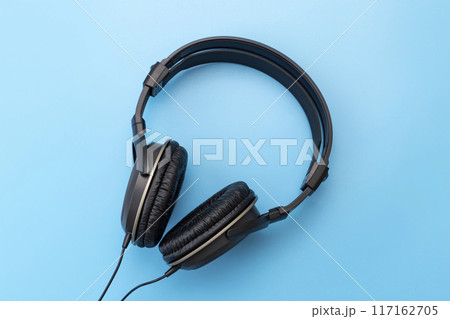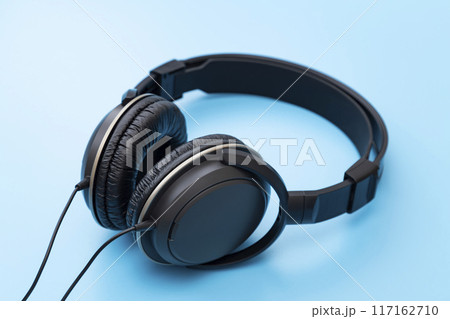 青背景にヘッドホン