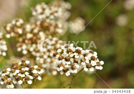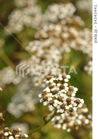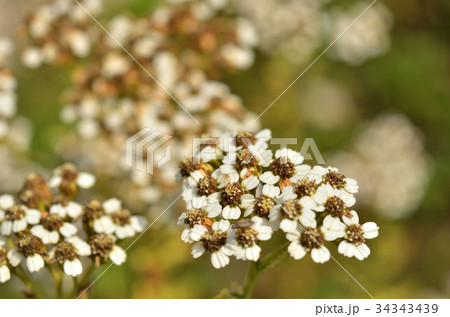 初夏の日本の公園に咲く白いノコギリソウの花