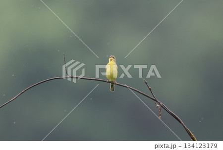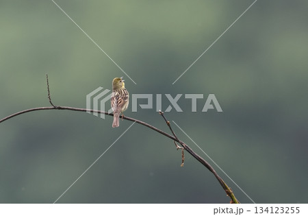 早朝の初夏の高原でさわやかな声でさえずる、日本固有の珍しい小鳥、ノジコ