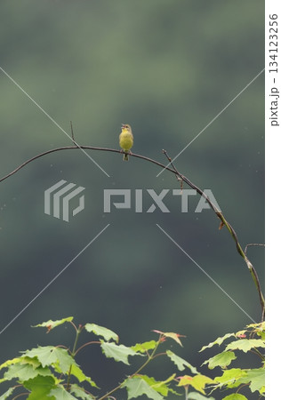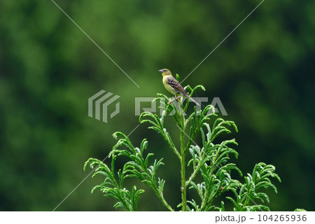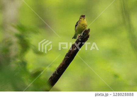 新緑の高原の森で見られる小さなかわいい小鳥、日本固有種のノジコ