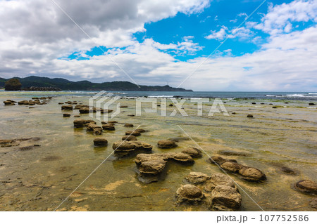 石見畳ヶ浦 千畳敷 沢山のノジュールと浸食された岩 島根県浜田市