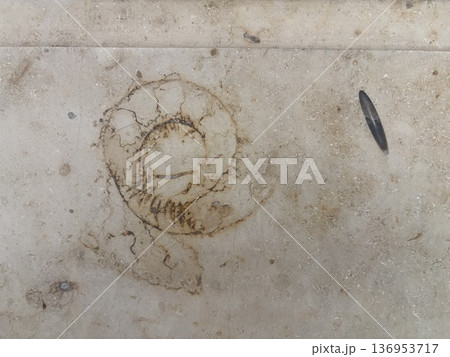 街の中の化石発掘_大理石の中で宝石のように結晶化した化石