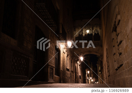中世の趣が残る夜のビズべ通り バルセロナ