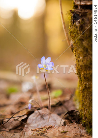 Anemone hepatica (Hepatica nobilis) Liverwort flowering in spring in the forest.