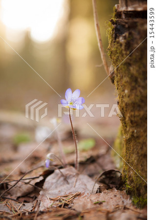 Spring flower. Beautiful blooming first small flowers in the forest. Hepatica. (Hepatica nobilis)