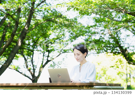 屋外で仕事をするノマドワーカー ビジネスイメージ