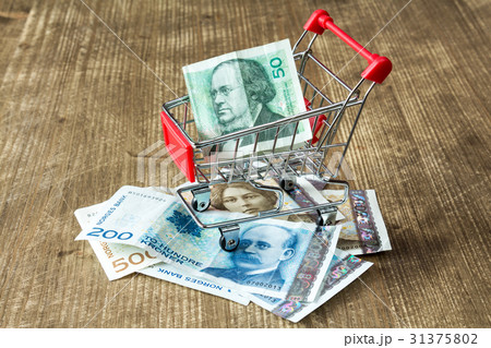 Norwegian currency and shopping cart