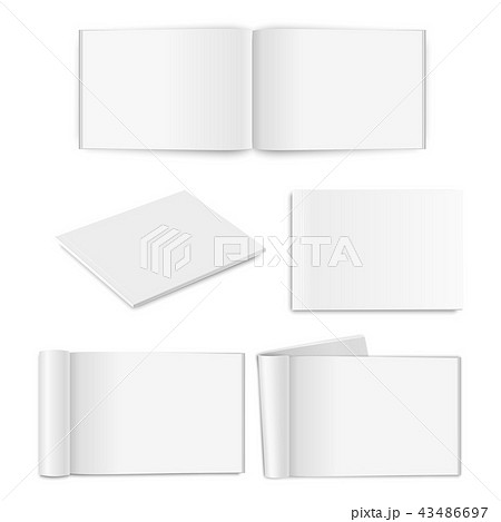 Vector realistic empty paper closed and opened A4 horizontal magazine, book, catalog or brochure