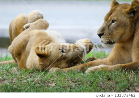眠るシマハイエナ
