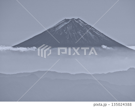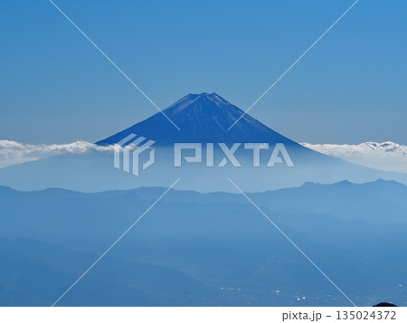 八ヶ岳連峰のニュウから見る富士山と金峰山など奥秩父連峰の風景