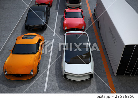 市街地走行中自動ブレーキをかけるトラックのコンセプトイメージ
