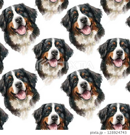 Seamless Watercolor Pattern of Adorable Bernese Mountain Dog Faces in Pastel Tones