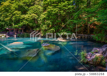 Mountain lake Blausee in the Jungfrau region of Switzerland