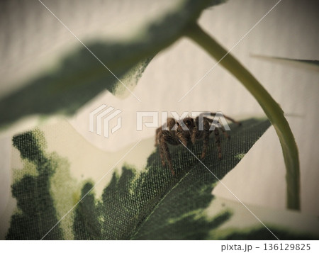 葉の上を移動する小型のクモ