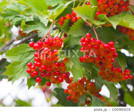 Bunches of red viburnum berries