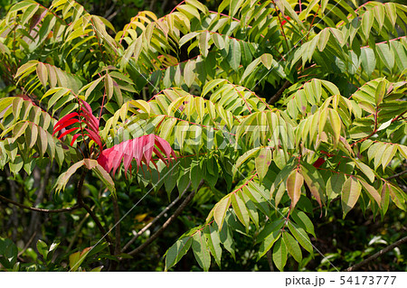 自然 植物 ハゼノキ、秋。別名『櫨紅葉(ハゼモミジ)』と呼ばれる美しい紅葉