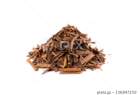 Broken ceylon cinnamon isolated, cinnamomum verum bark pieces
