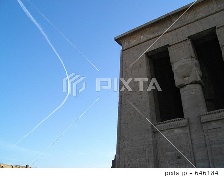 エジプト デンデラ・ハトホル神殿と飛行機雲