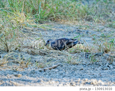 地面で採餌するハトカカワラバト