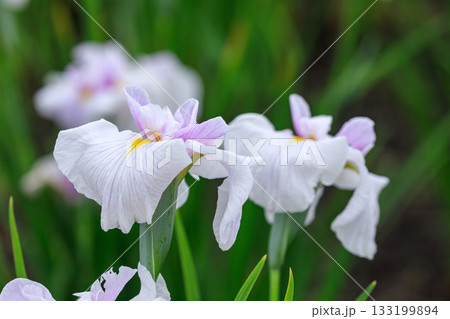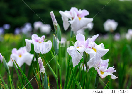 北海道苫小牧市、錦大沼ハナショウブ園で咲き誇るハナショウブ・翠映(江戸系)【7月】