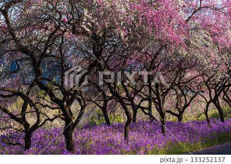 紫花大根 ムラサキハナナが満開の紫色のお花畑