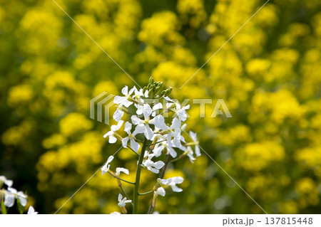 白いハナダイコンの花と菜の花