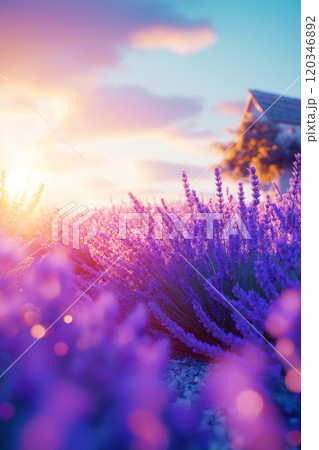 Lavender field in morning sun. Blooming lavender in Provence, France
