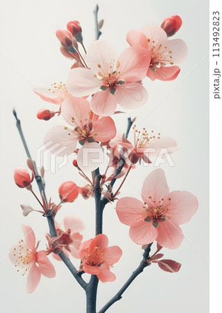 branch of a blossoming apple tree close-up, stock photo, in the style of light pink and dark indigo, minimalistic sketches of nature. Generative AI.