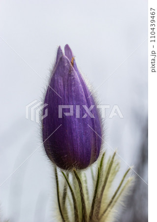 Pulsatilla slavica. Spring flower in the forest. A beautiful purple fluffy plant that blooms in early spring. Disappearing spring flowers